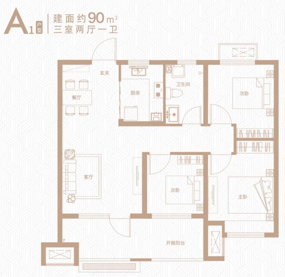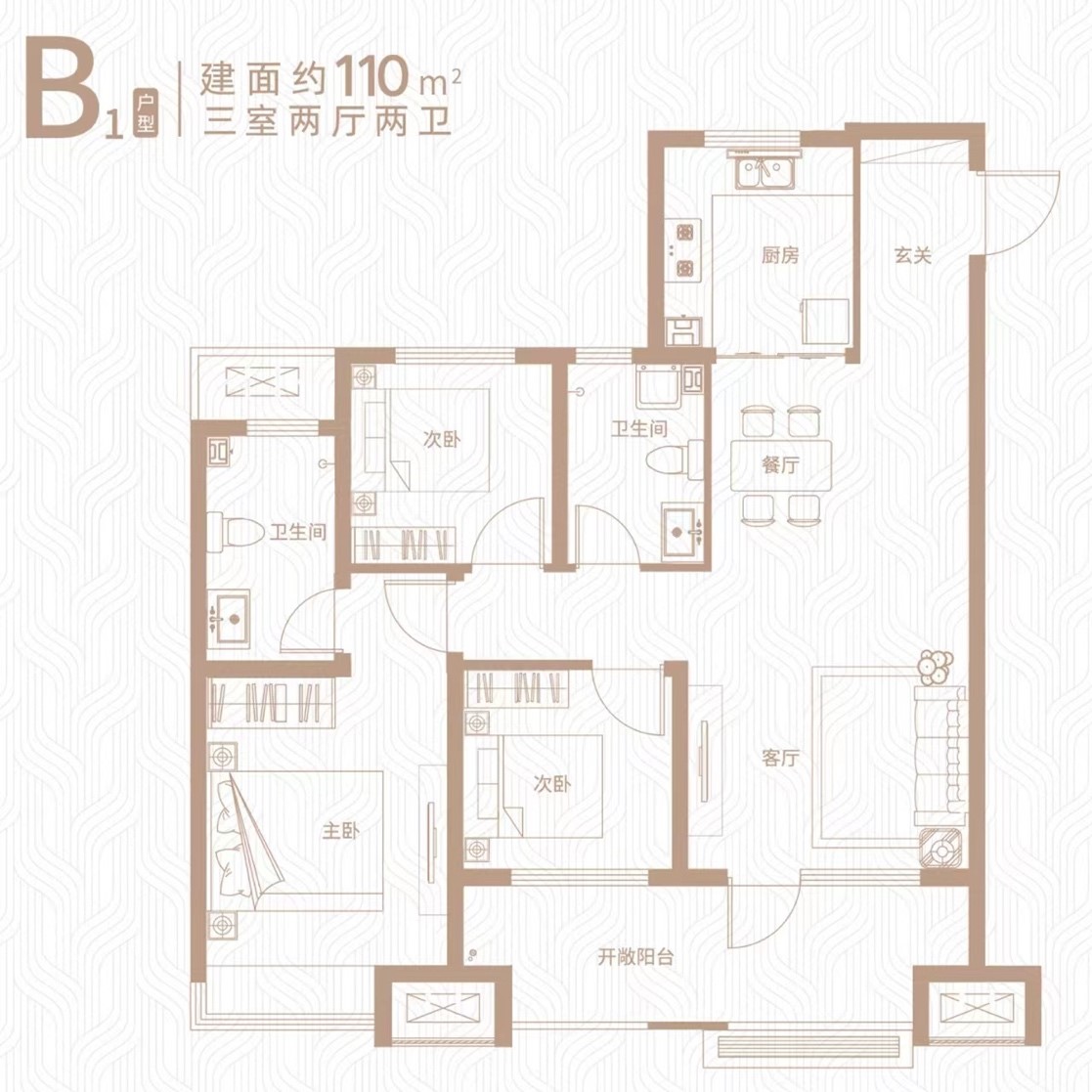 戶型共分為三種,分別為80平、90平、110平。