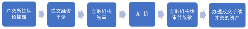 (5)金融機(jī)構(gòu)終審并放款:金融機(jī)構(gòu)對融資項(xiàng)目終審并放款至產(chǎn)交所指定賬戶。